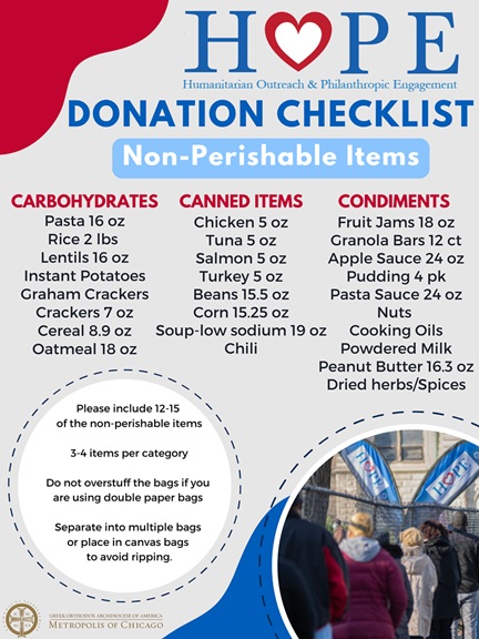 d) Help us collect items for Project Hope, bring Non-Perishable Items to our Parish